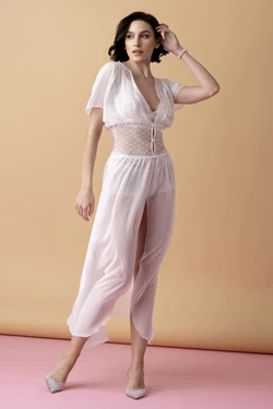 Ballade – krótki peniuar z szyfonu i koronki – ecru
