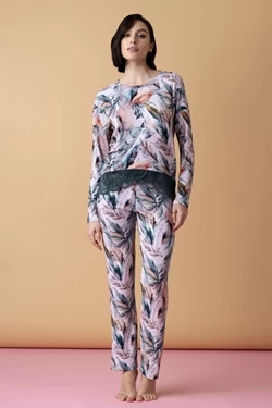 Sonnet długa piżama z koronką – druk pióra