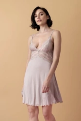 Poem krótka koszulka nocna na ramiączkach – migdałowa