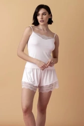 Poem krótka piżamka z koronką – kremowa