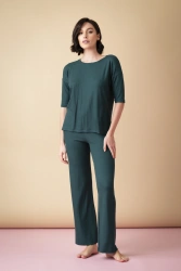 Sonnet - długa piżama prążkowana z rękawem 3/4 – ciemna butelkowa zieleń
